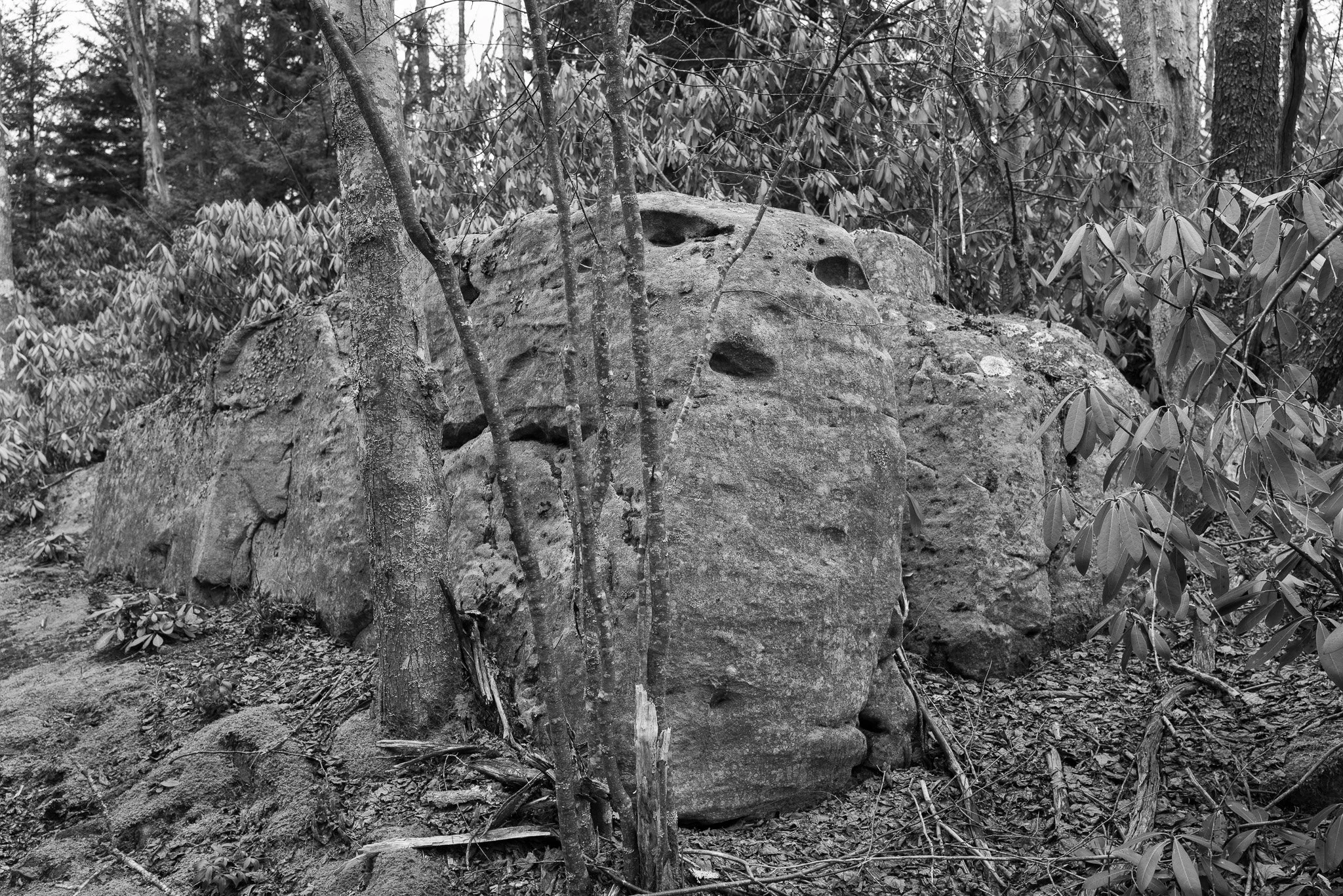 Allegheny peaks and forests are peppered with singular boulder formations. The rocks are much older than the forest. They are much, much older than us. They sit in silence as life around them grows and dies. Seeming permanence surrounded by impermanence.